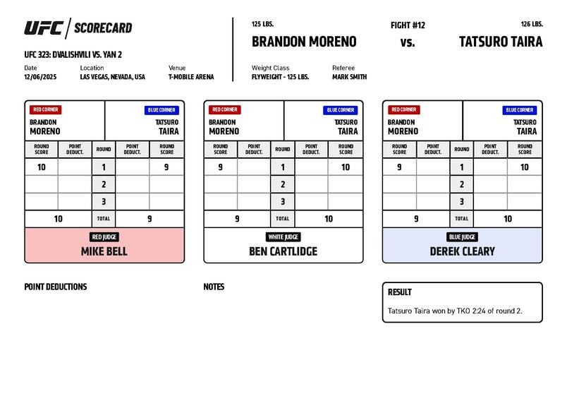 | Brandon Moreno | Tatsuro Taira | ||