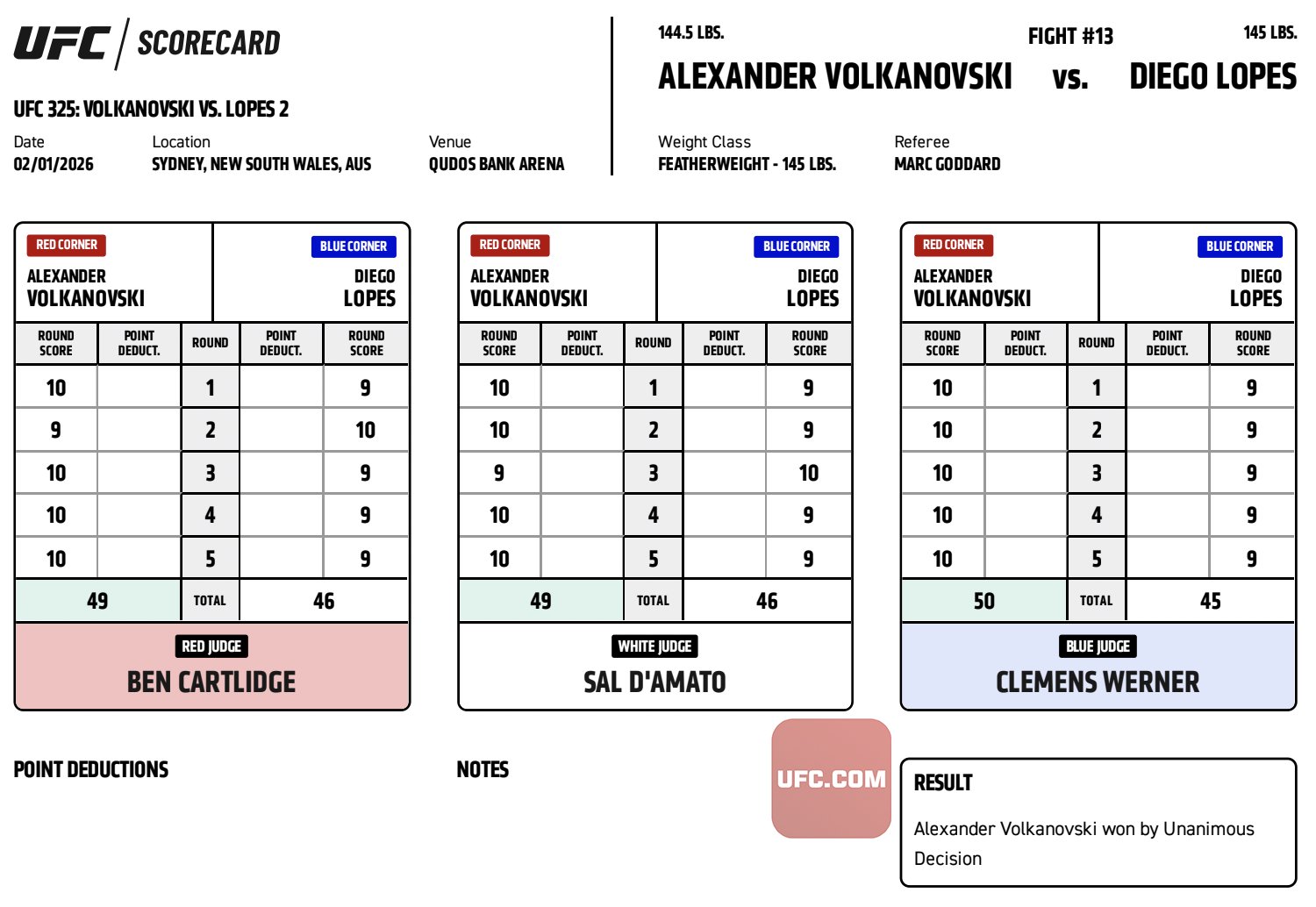 | Alexander Volkanovski | Diego Lopes | ||