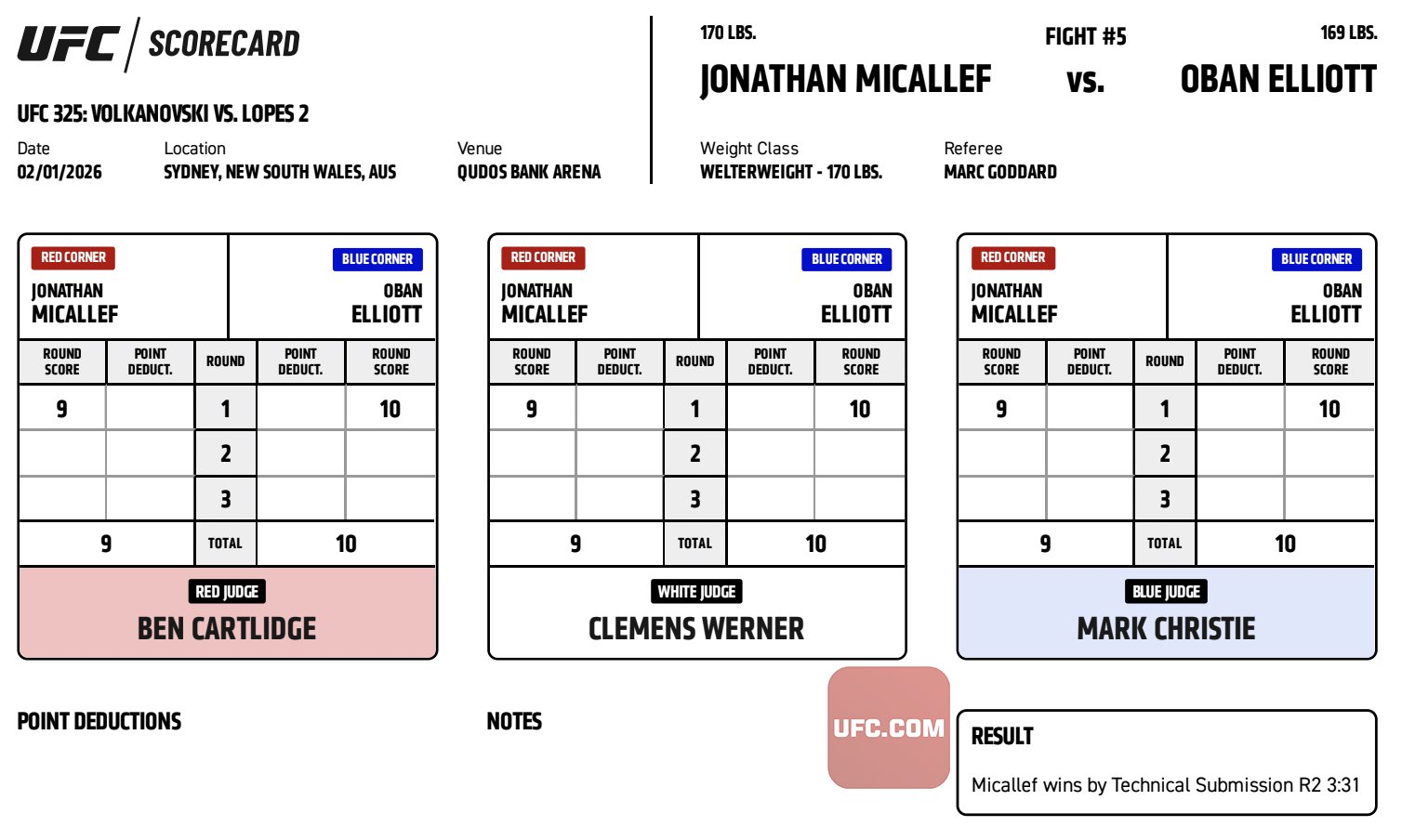 UFC 325 - Jonathan Micallef vs. Oban Elliott