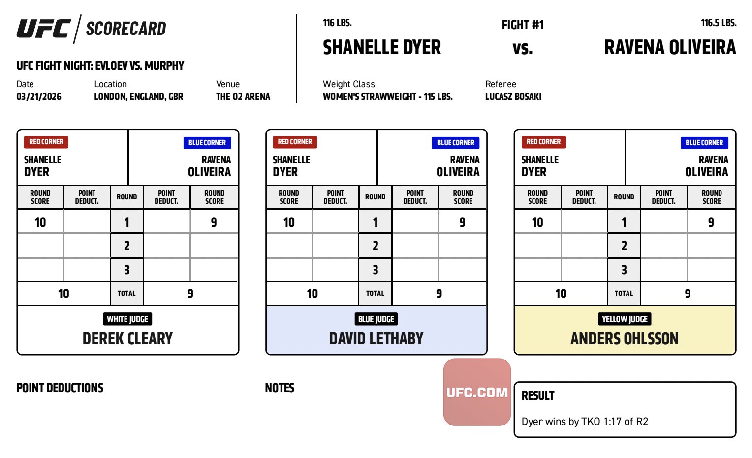 UFC FIGHT NIGHT 270 - Ravena Oliveira vs. Shanelle Dyer