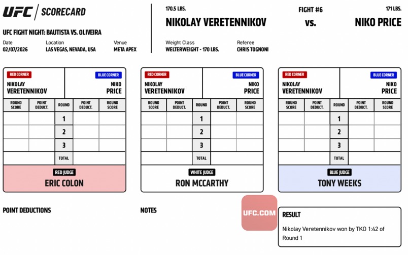 UFC FIGHT NIGHT 266 - Niko Price vs. Nikolay Veretennikov
