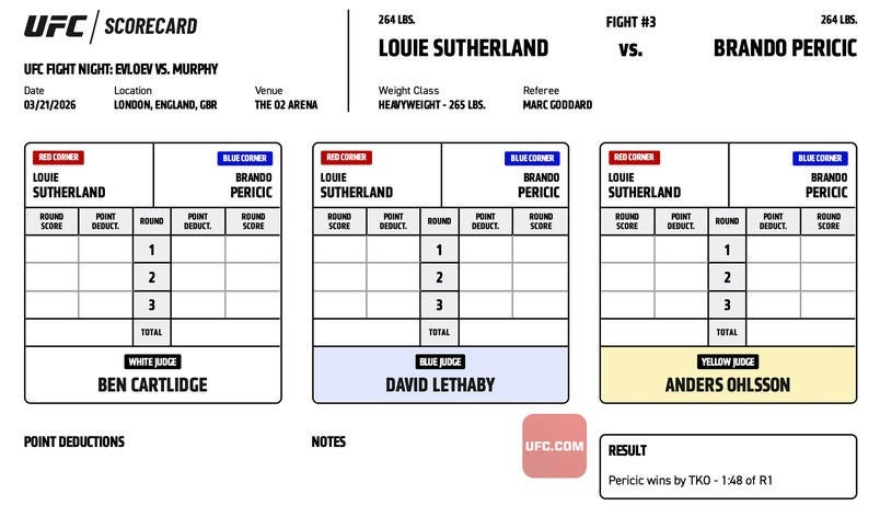 UFC FIGHT NIGHT 270 - Brando Pericic vs. Louie Sutherland