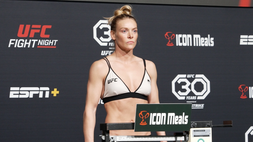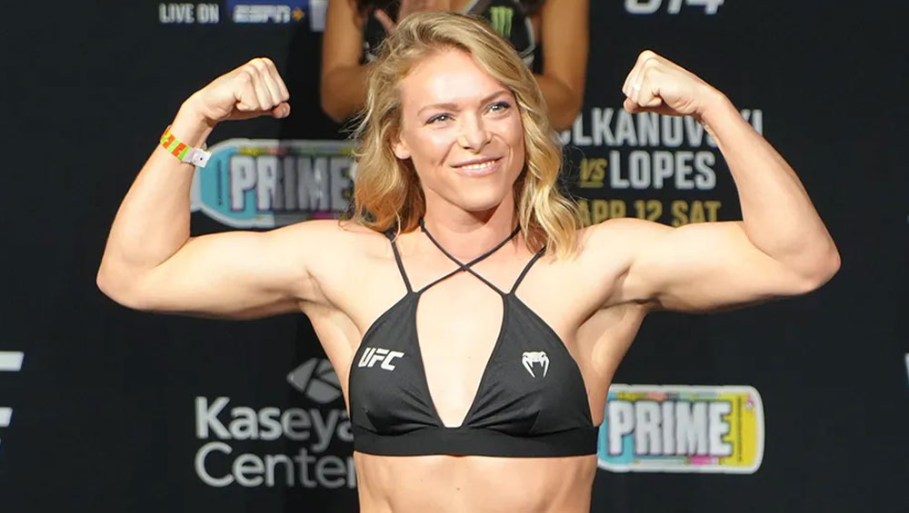 | | Age | 33 ans | | Naissance | 12/02/1992 | | Hauteur | 5'8" 173 cm | | Allonge | 69" 176 cm | | Allonge jambe | 40" 102 cm | | Catégorie | Poids Coqs (135lbs/61.23kg) | | Arts Martiaux, styles | Jiu-jitsu brésilien, Kickboxing | | Début | Elle a débuté en tant que gymnaste de haut niveau jusqu'à l'université avant de se tourner vers le MMA à l’âge adulte.
