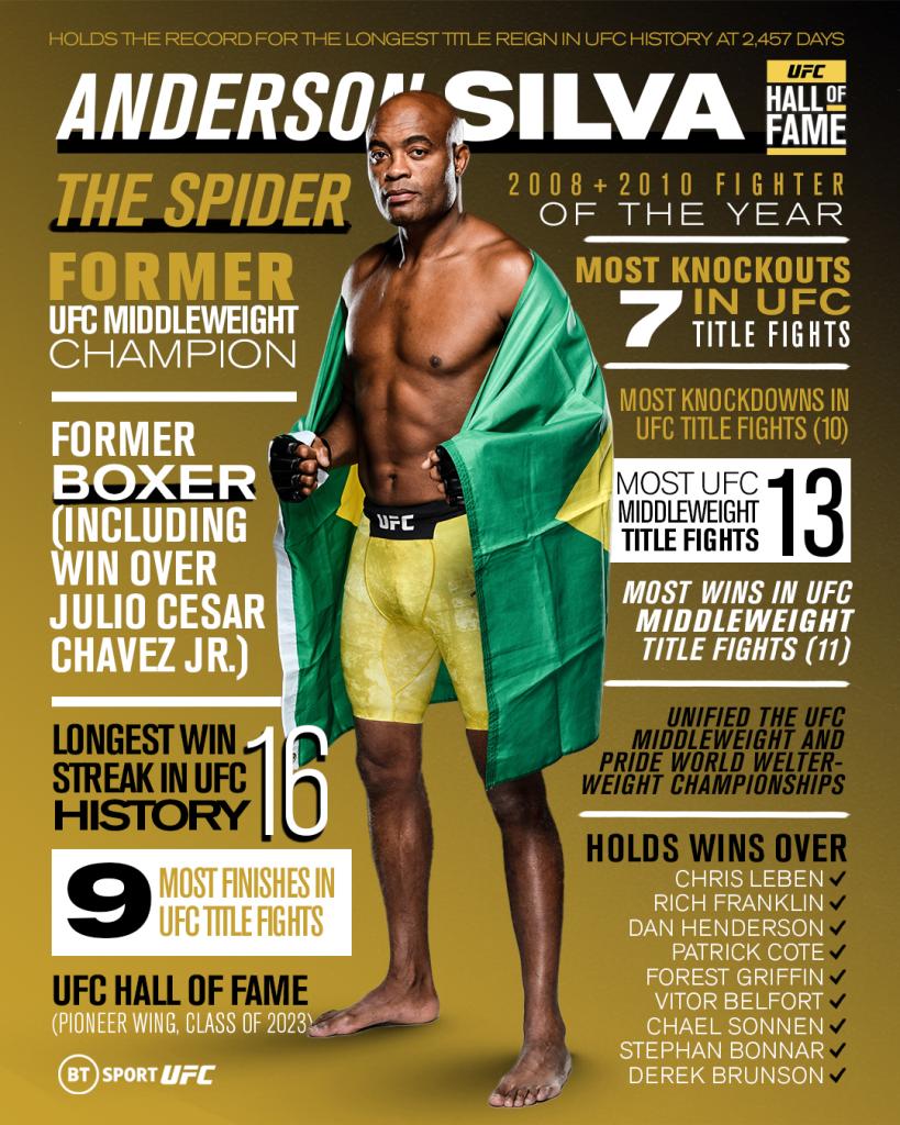 Malheureusement, Anderson Silva n'est pas présent pour son discours de remerciementn son fils Kalyl le remplacera.